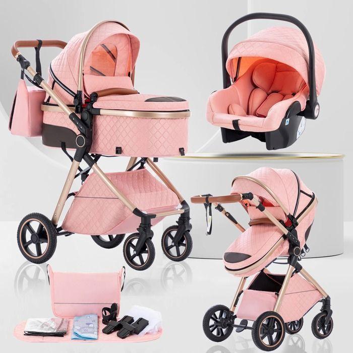 BAZARLAND30. 3-in-1 Baby Stroller Combined Car Seat Bassinet Reversible Trio. New Model. PINK