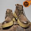 Martin Boots Men's Autumn British Retro Leather Heightening Locomotive Leather Boots Sports Big Head High Top Boots Velvet
