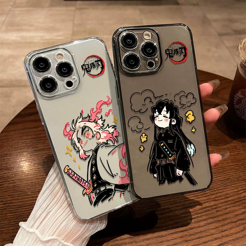 Demon Slayer Muichiro & Sanemi Chibi Clear TPU Phone Case For IPhone 15 Pro Max & Samsung Galaxy S24 Ultra, Shockproof Cover