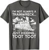 Trainwreck Funny Saying Locomotive Graphic Tee Casual Short Sleeve Cotton TShirt for Men Women