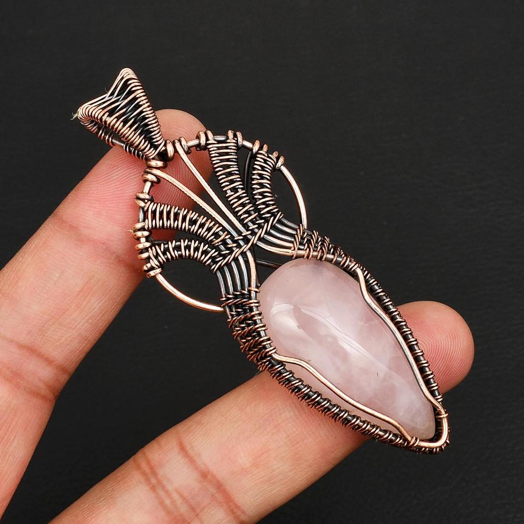 Vintage Style Rose Quartz Gemstone Copper Wire Wrap Pendant Unique Boho Pendant Anniversary or Birthday Jewelry Gift