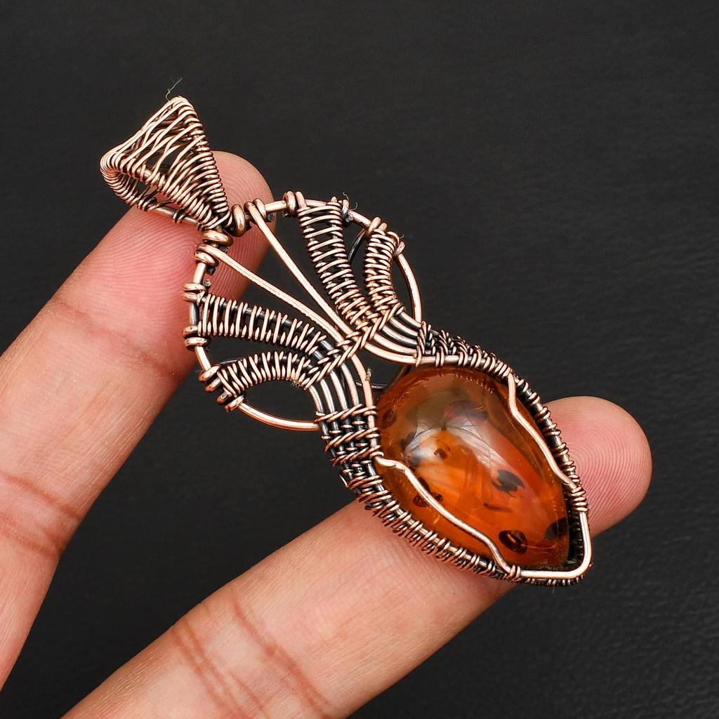 Unique Tree of Life Inspired Copper Pendant Wire Wrap Amber Gemstone Pendant Charm Artisan Handcrafted Jewelry
