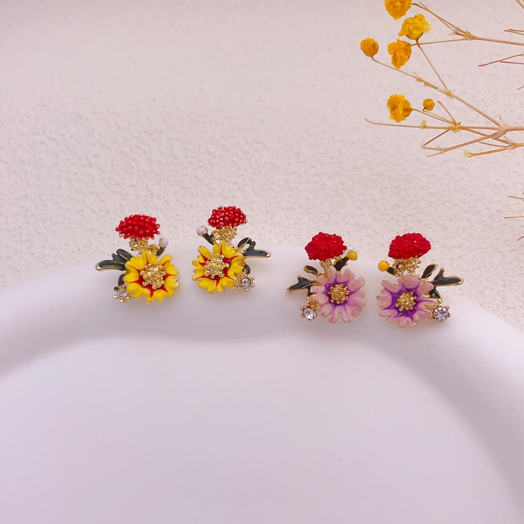 Color Contrast Daisy Flower Earrings Niche Design Sensitive Mori Oil Drip Earrings In Wind Earrings