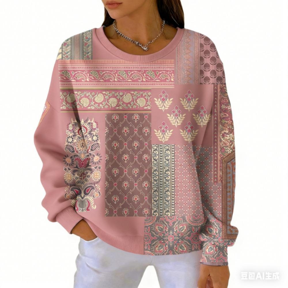 Spring Fashion Women's T-shirt Casual Vintage Print Pullover Women Long Sleeve Clothing Outdoor Casual Tees Top