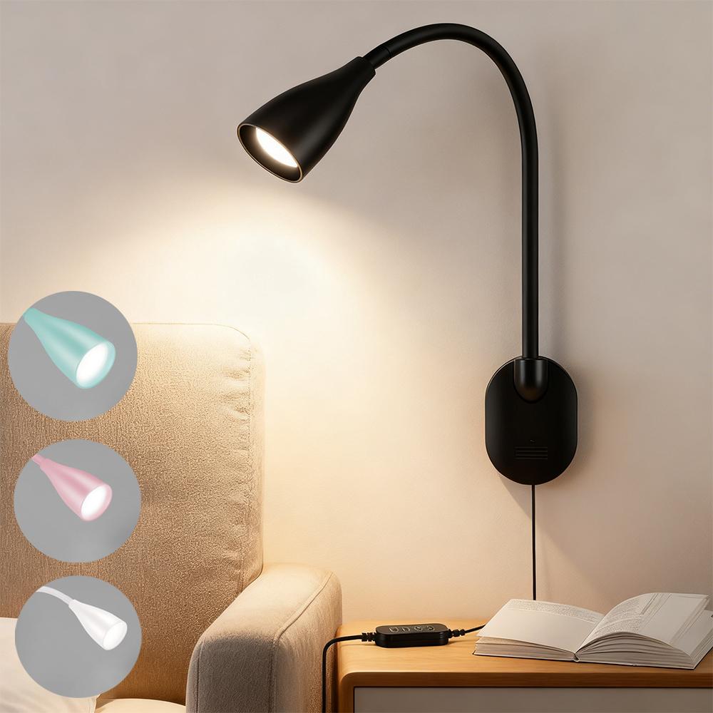 LED Flexible Gooseneck Wall-Mounted Reading Lamp, Dimmable & 3 Color Temperature Book Light for Desk or Bedside, Study Light
