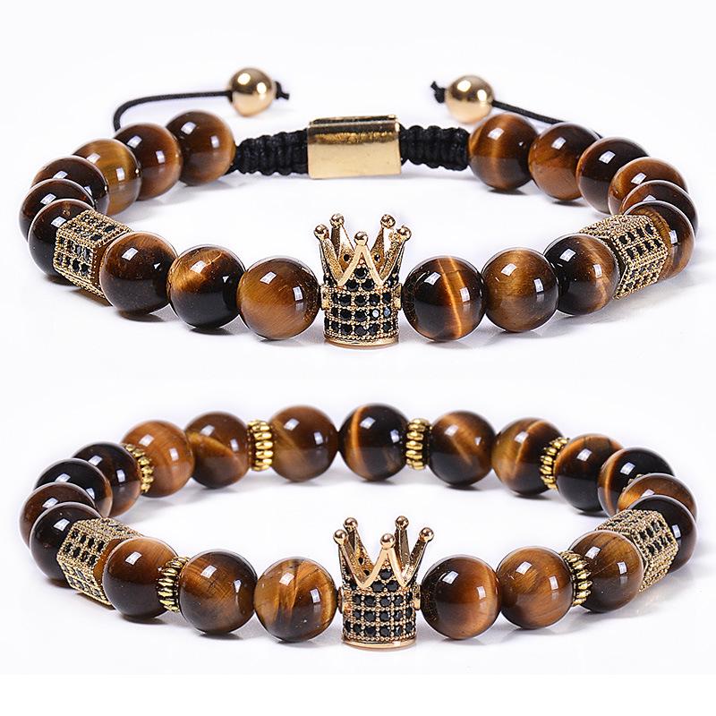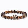 Natural Tiger Eye Stone Crown Bracelet, Natural Stone Copper Micro Inlaid with Zircon, Hexagonal Elastic Bracelet