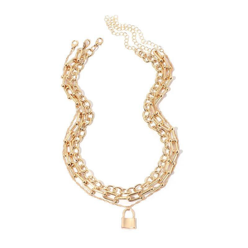 European and American New Gold Lock Stacked Multi-layer Necklace, Fashionable Personalized Chocker Collarbone Chain Necklace