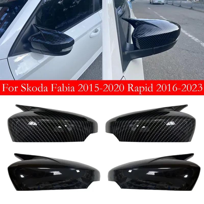 For Skoda Fabia 2015- Rapid 2016- Car Sticker Rearview Side Mirror Cover Wing Cap Exterior Door Rear View Case Trim ABS