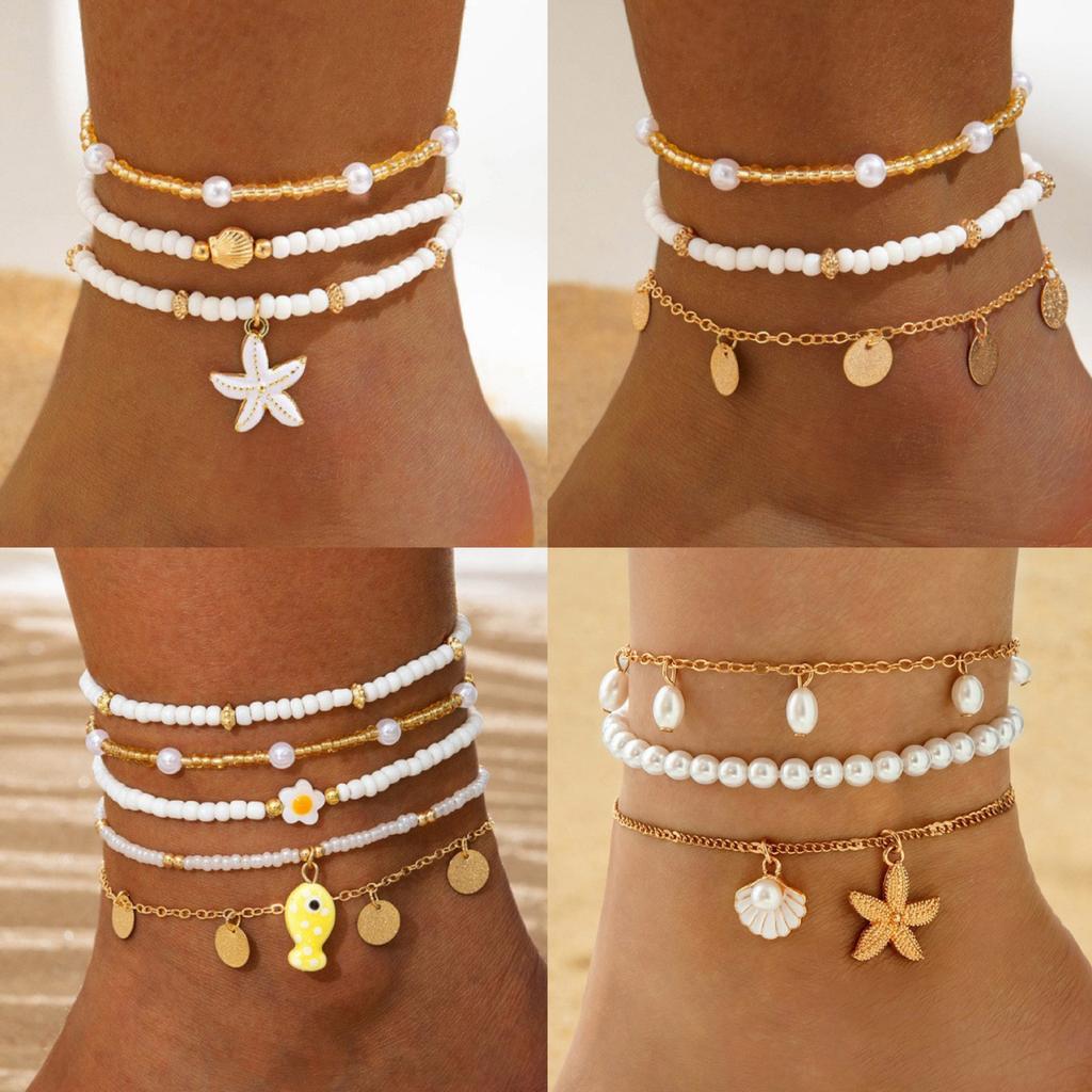 Accessories Bohemian Iron Disc Pendant Rice Bead Anklet Multi-layer Beach Foot Decoration Set