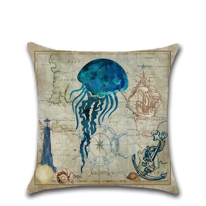 Sea Turtle Nautical Mermaid Pattern Cotton Linen Throw Pillow Cushion Cover Car Home Decoration Sofa Decorative Pillowcase DT--,(6)