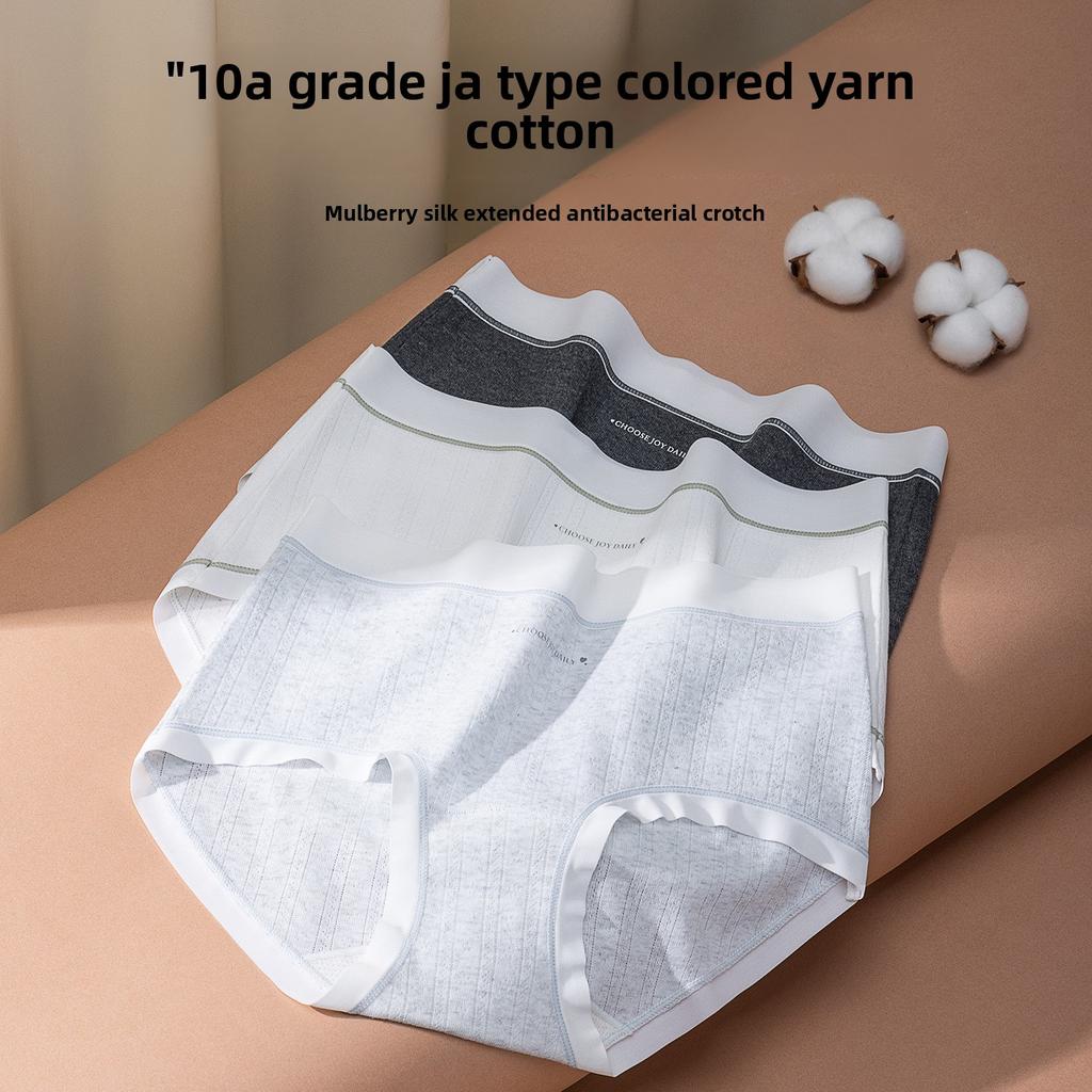 Ladies Spring and Autumn High Elastic Cotton Antibacterial Extended Crotch No Mark Middle Waist Triangle Briefs