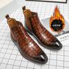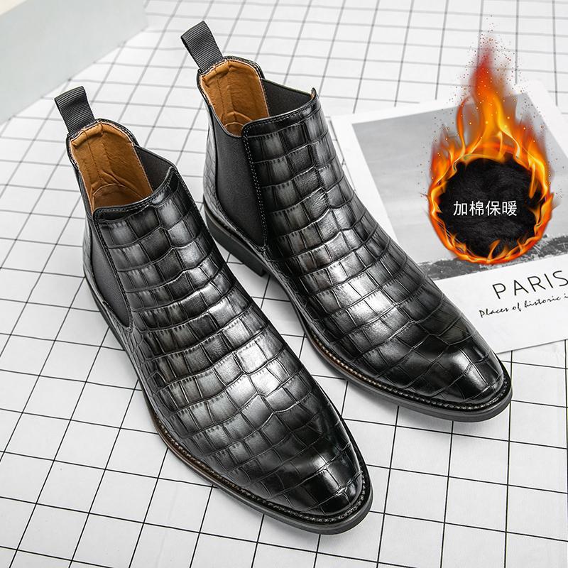 Large Size Leather Boots Crocodile High Top Cotton Shoes Business Leather Shoes Fleece Chelsea Boots