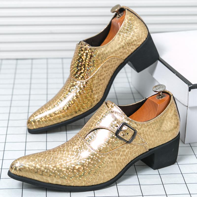 New Men Fashion Pointed Gold Blue Patent Leather Shoes Male Charm Monk Strap Punk Rock Loafers Wedding Party Prom Flats Footwear