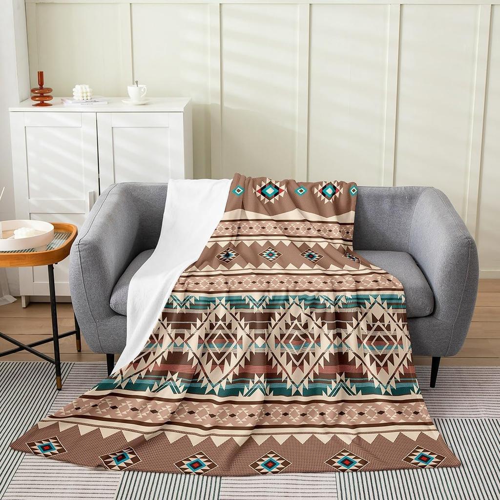 Aztec Pattern Blanket Tribal Design Fleece Throw Boho Home Decor Cozy Sofa Cover Geometric Print Bedding