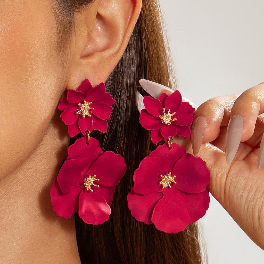 Ornament Pleated Texture Flower Earrings, Creative Temperament Flower Fresh Earrings