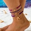 Bohemian Starfish Shell Colored Rice Bead Anklet Set, Beach Wind Starfish Beaded Feet Decoration Women