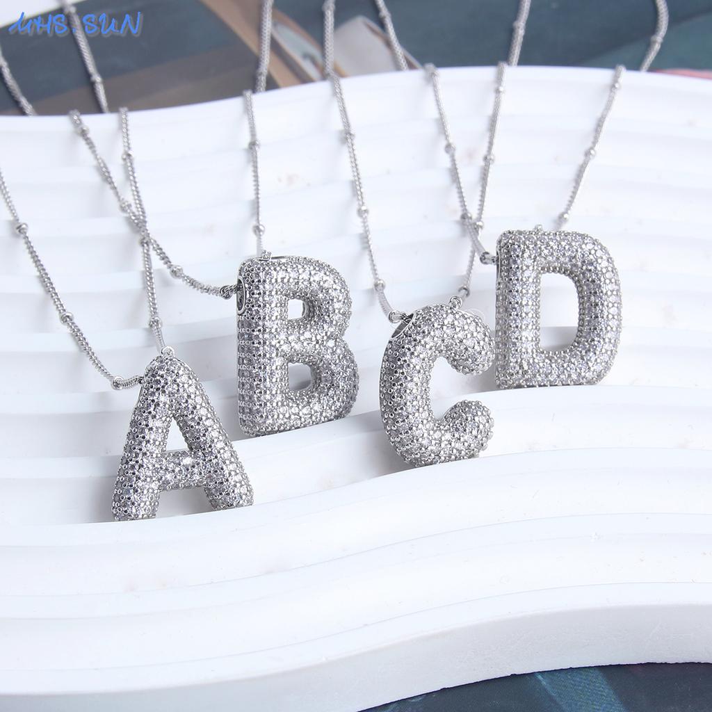 MHS.SUN High Quality Bubble Initial Necklace Letter A-Z Silver Color Zircon 26 Initial Balloon Pendant For Women Men Jewelry