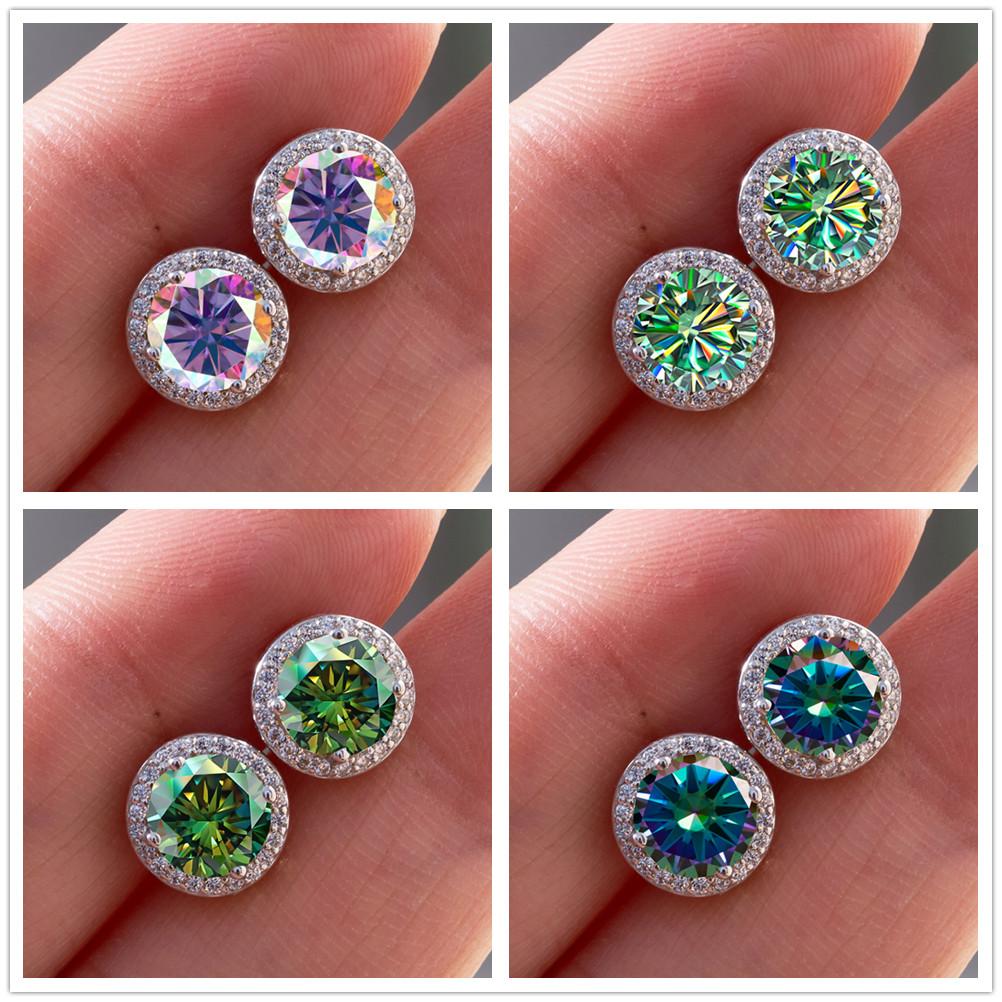 925 Silver 1 Carat Moissanite Round Earrings Engagement Wedding Daily Work Party Travel Luxurious Gift For Women