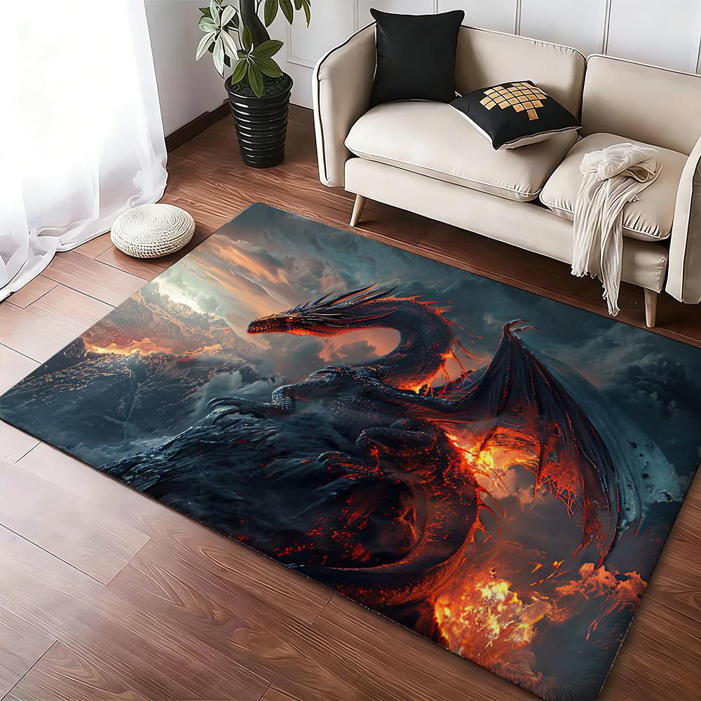 Fierce Red Dragon Floor Mat Cozy Flannel Soft Thick Non-Slip Mat For Living Room Bedroom Kitchen Decor Rugs