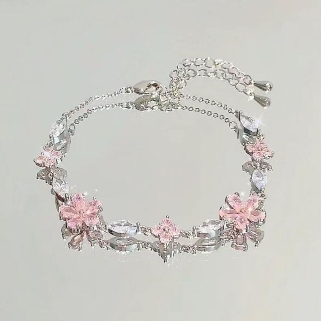 Sparkling Cherry Blossoms Butterfly Bracelet Women's Fashion Temperament Wave Moon Flower Adjustable Bracelet Wedding Jewelry