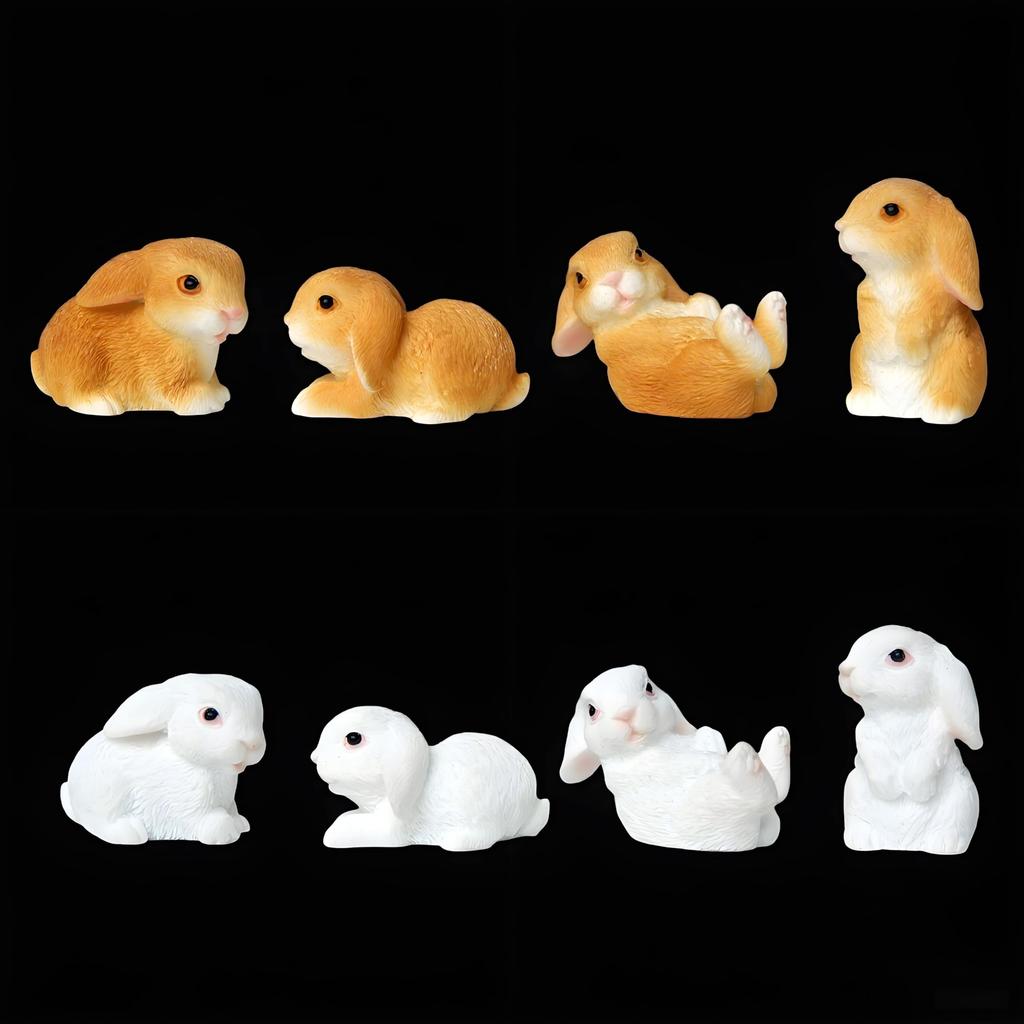 Set of 8 Miniature Rabbit Soothing Cute Gardening Fairytale Landscape Bonsai Micro Landscape Accessories Figurines, Animals, Figurines, Accessories,