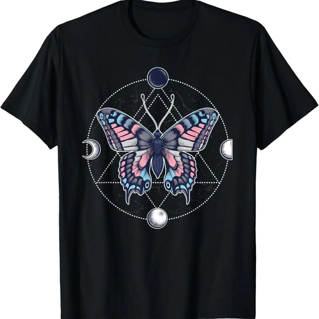 Transgender Butterfly Trans Pride Flag LGBT Moon Subtle Gay T-Shirt,100% Cotton