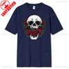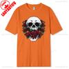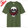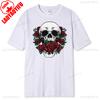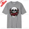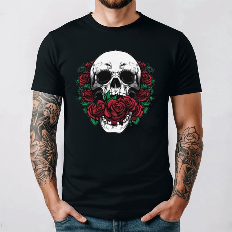 Skull and Red Roses Skeleton Gothic Hipster Novelty ShortSleeve Unisex TShirt Skeleton and Flower Pattern Cotton Casual Shirt