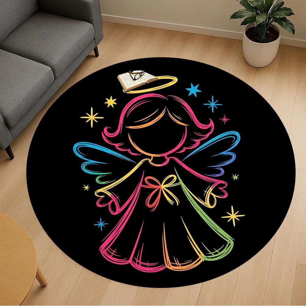 1pc Angel Star Round Chair Mat Area Rug - Non-Slip, Floor Mat for Office, Bedroom, and Indoor Decor -1002143