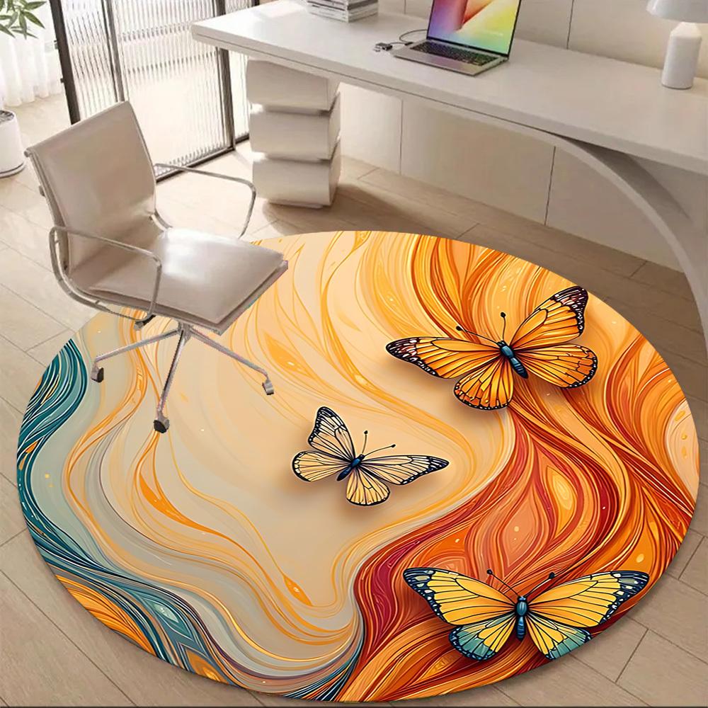 1pc Butterfly Flow Office Round Area Rug, Indoor Mat Suitable ForOffice, Under Office Chairs Bedroom Living Room Home Decor, Room Deco D037