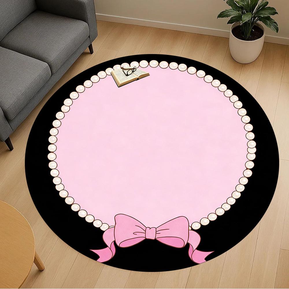 1pc Pearl Bow Round Chair Mat Office Area Rug - Non-Slip, Floor Mat for Office, Bedroom, and Indoor Decor P127219