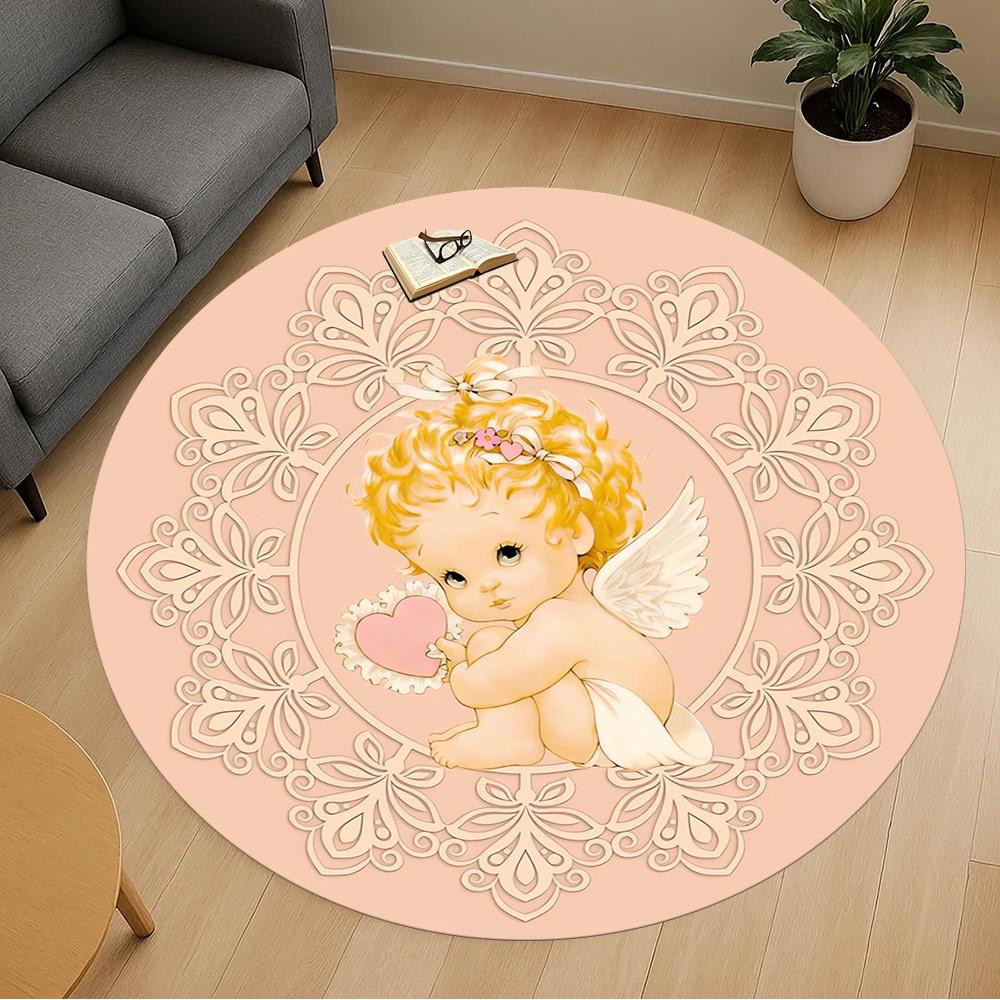 1pc Angel Baby Round Chair Mat Office Area Rug - Non-Slip, Floor Mat for Office, Bedroom, and Indoor Decor P127198