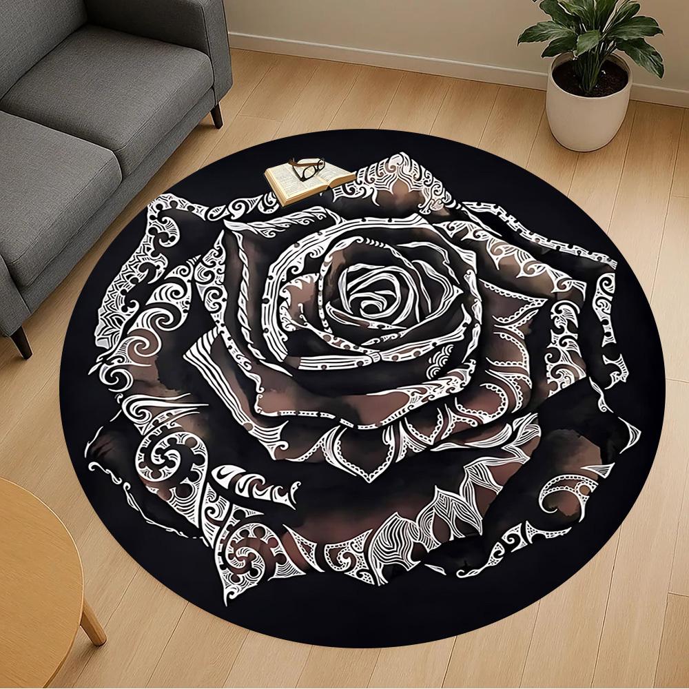 1pc Rose Pattern Round Chair Mat Office Area Rug - Non-Slip, Floor Mat for Office, Bedroom, and Indoor Decor P127118