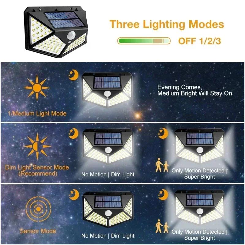 Outdoor 100 LED Wall Light Intelligent Human Body Sensing Solar Wall Light Outdoor Waterproof Courtyard Lighting Street Light