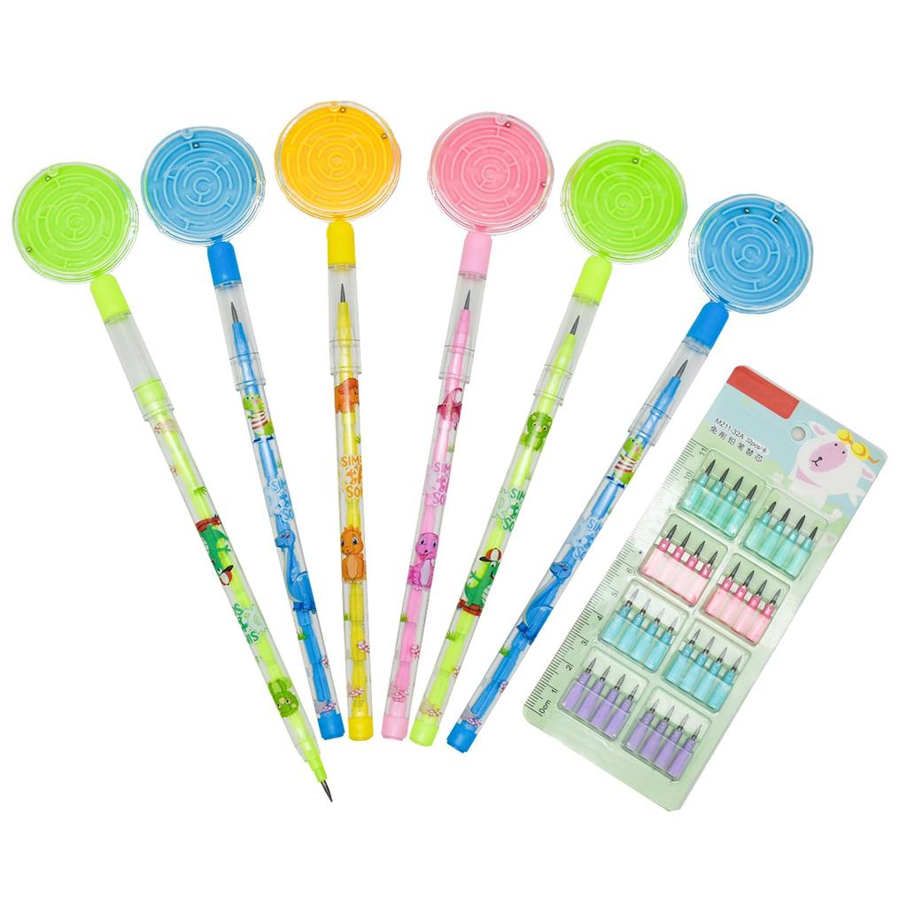Lopenle Rocket Mechanical Pencil Set with 64 High for Elementary and Junior High School Dinosaur and Floral Stackable No Sharpening Kids Prize