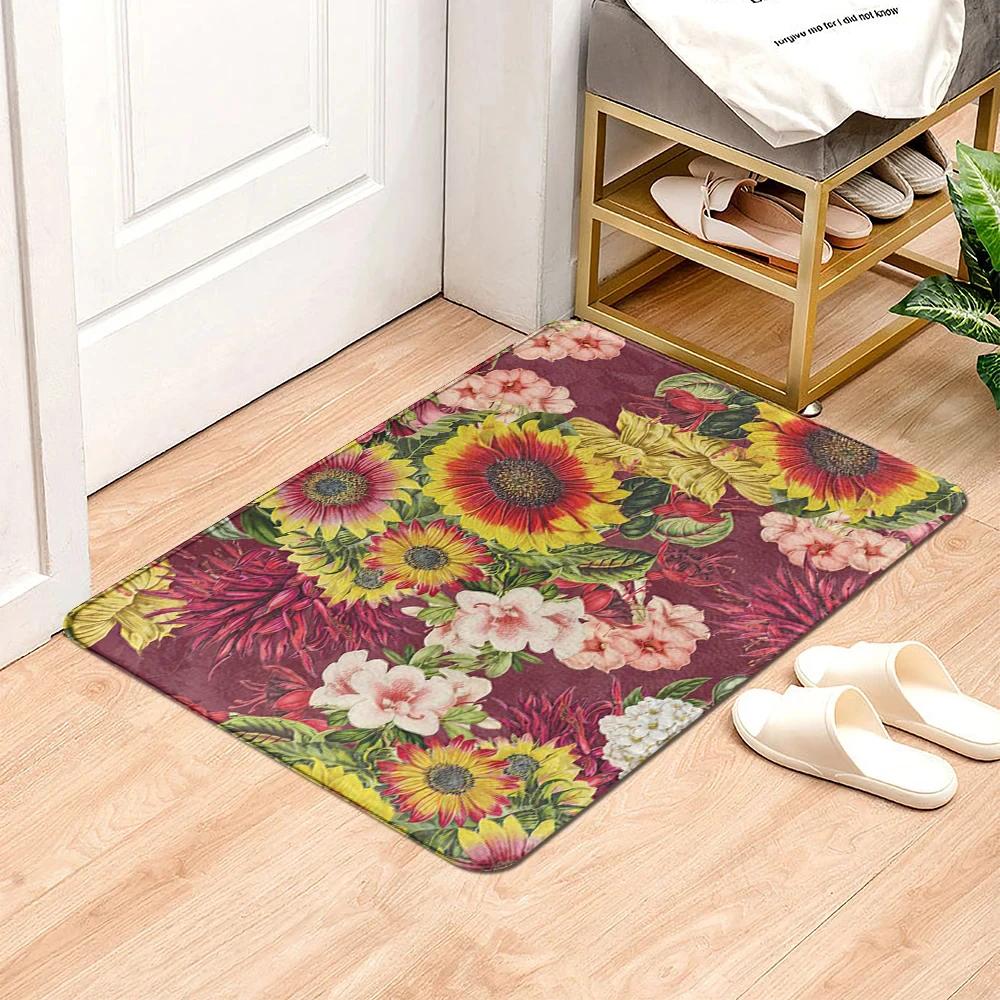 Beautiful Flowers Entrance Door Floor Mat Door Mat Non-Slip Foot Pad Home Welcome Carpet for Hallway Bath Kitchen Doormat