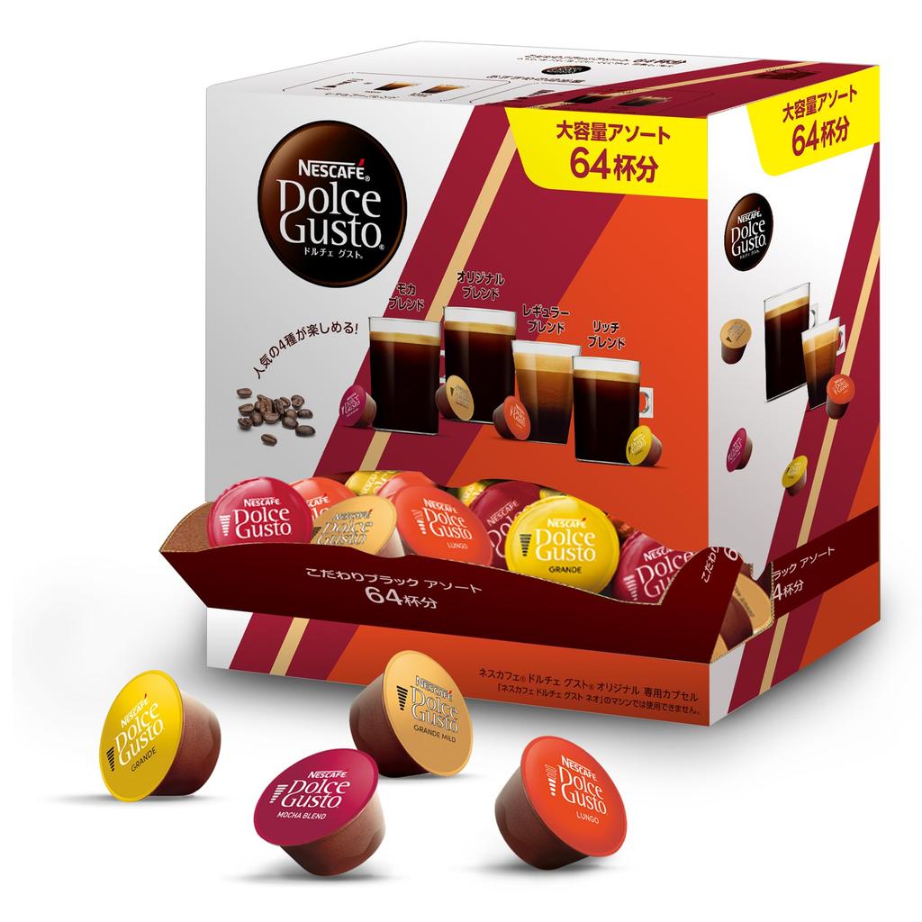 Dolce Gusto Original Capsules Neo Black Coffee 4 Popular Assorted for Tasting Nescafé (Not Compatible) - Capsules, Flavors, (64 Servings)