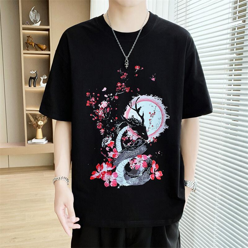 Summer New Men's Heavy Short-sleeved Guochao T-shirt Chinese Style Men's Pure Cotton Batch