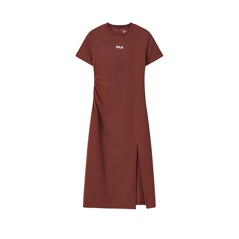 Fila Original Split Goddess Dress III Fashion Simple Classic Retro Elegant Relaxed Casual Versatile Comfortable Short Sleeve Maxi Dress F51W629304FBN