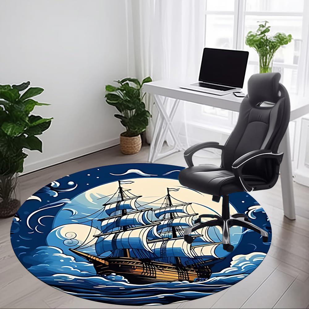 1pc Sailboat Ocean Office Round Area Rug, Under Office Chairs Bedroom Living Room Home Decor, Room Deco, Available In Various Sizes