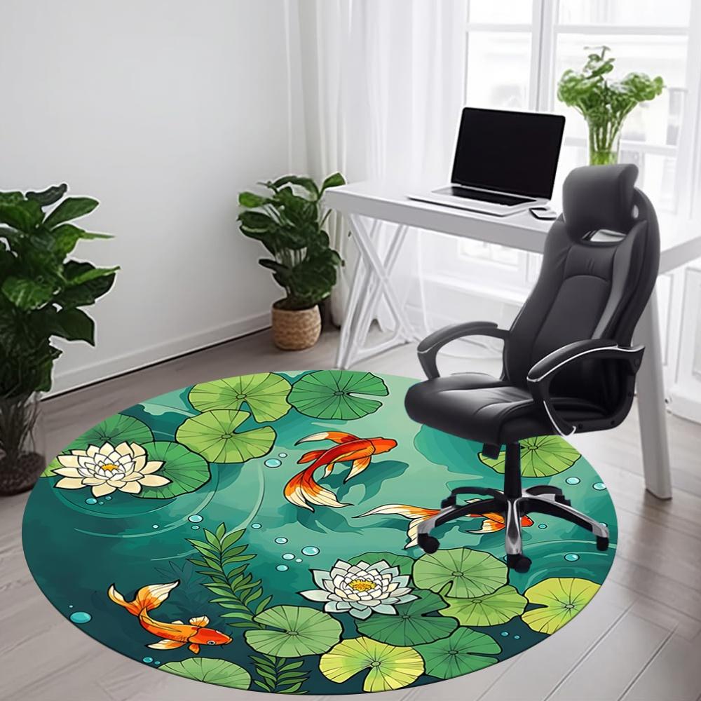 1pc Pond Fishes Office Round Area Rug, Mat Suitable For Office, Under Office Chairs Bedroom Living Room Home Decor, Room Deco