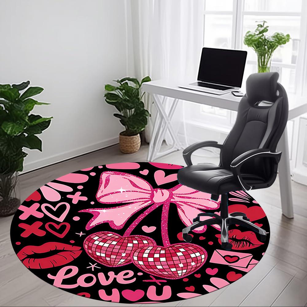 1pc Cherish Love Office Round Rug, Non-slip, Soft and Durable Office Rug for Interior Decoration, Perfect for Office,Decoration Yy260204062