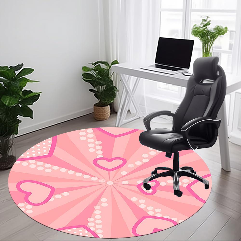 1pc Pink Hearts Pattern Office Round Rug, Carpet for Office, Gaming, Lightweight Round Floor Mat Yy260208008