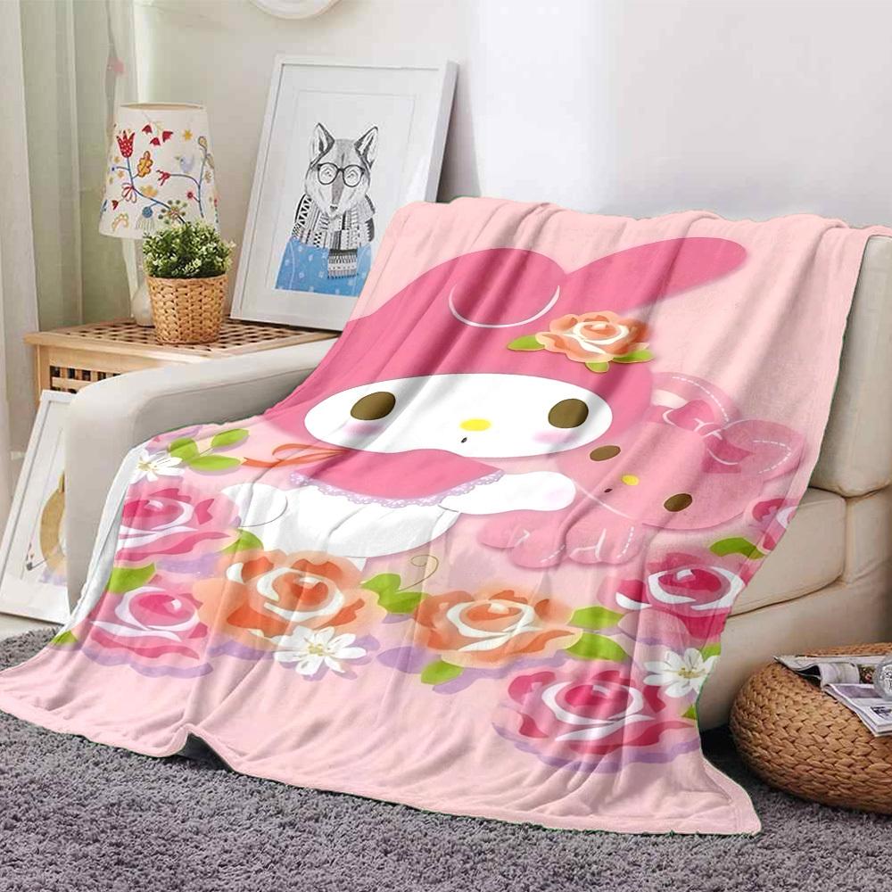 1pc My Melody Flowers Blanket Lightweight Flannel Throw for Sofa Bed Travel Camping Livingroom Office Couch Chair