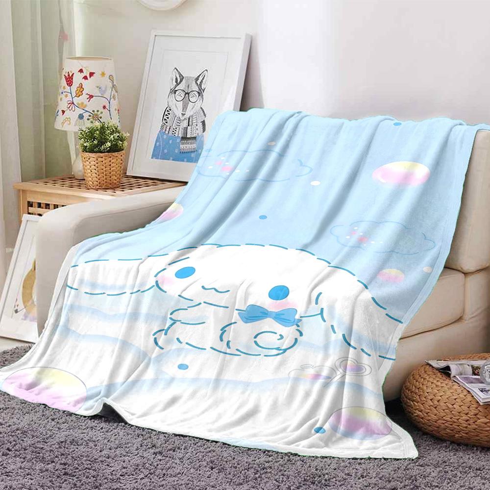 1pc Cinnamoroll Name Blanket Lightweight Flannel Throw for Sofa Bed Travel Camping Livingroom Office Couch Chair