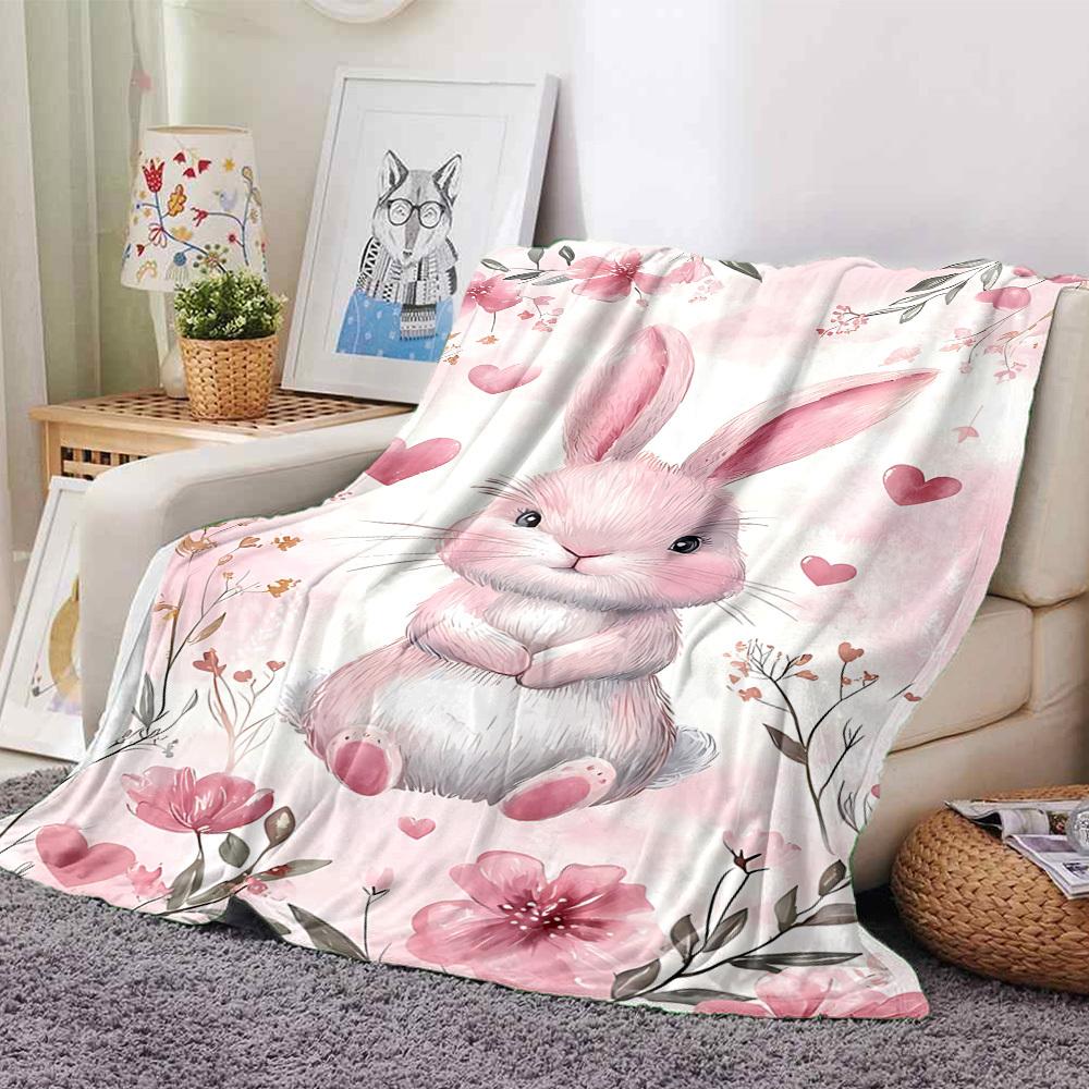 1pc Rabbit Flowers Blanket Lightweight Flannel Throw for Sofa Bed Travel Camping Livingroom Office Couch Chair