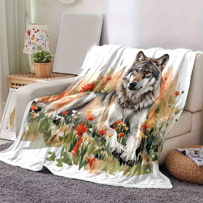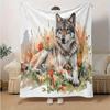 1pc Wild Wolf Amidst Autumnal Wildflowers Blanket Cartoon Throw for Home Decor, Gift Idea, Room Decoration, Living Room, Travel, Camping