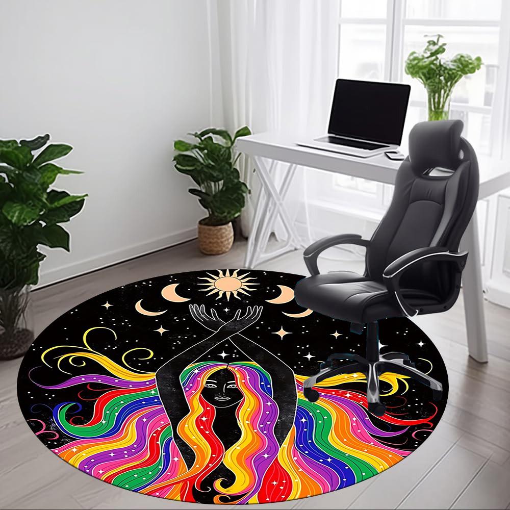 1PC Celestial Balance Office Round Rug, Non Slip, Soft and Durable Office Rug for Interior Decoration, Perfect for Office