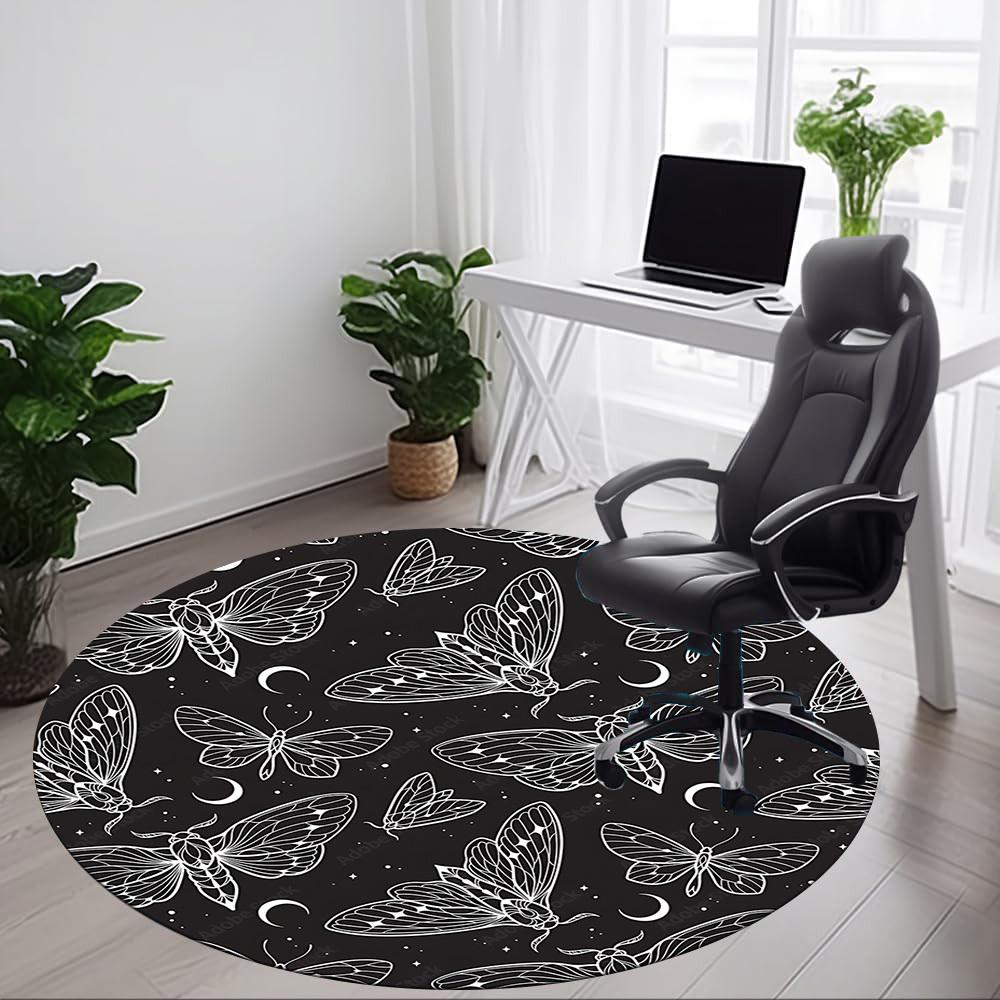 1pc Butterfly Night Office Round Area Rug, Under Office Chairs Bedroom Living Room Home Decor, Room Deco