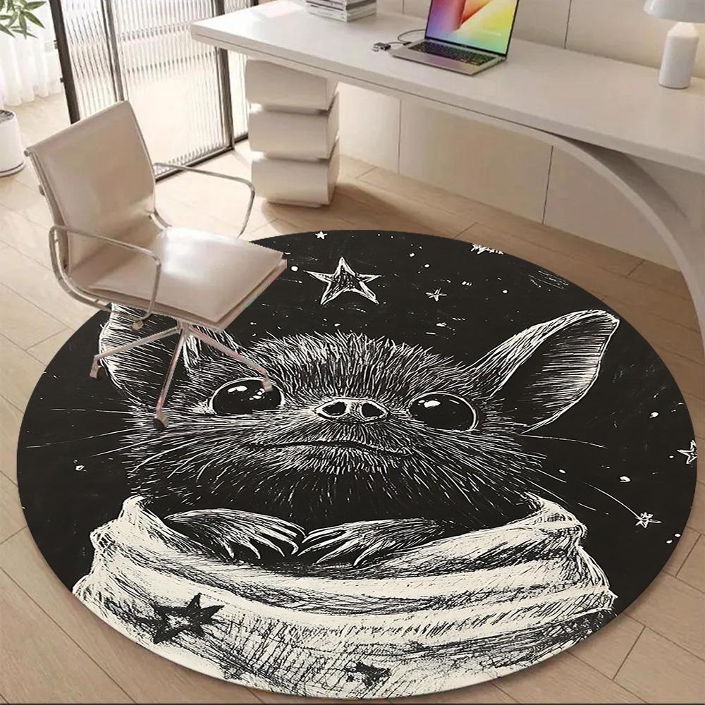 1PC Bat Starry Office Round Area Rug, Mat Suitable For Office, Under Office Chairs Bedroom Living Room Home Decor, Room Deco