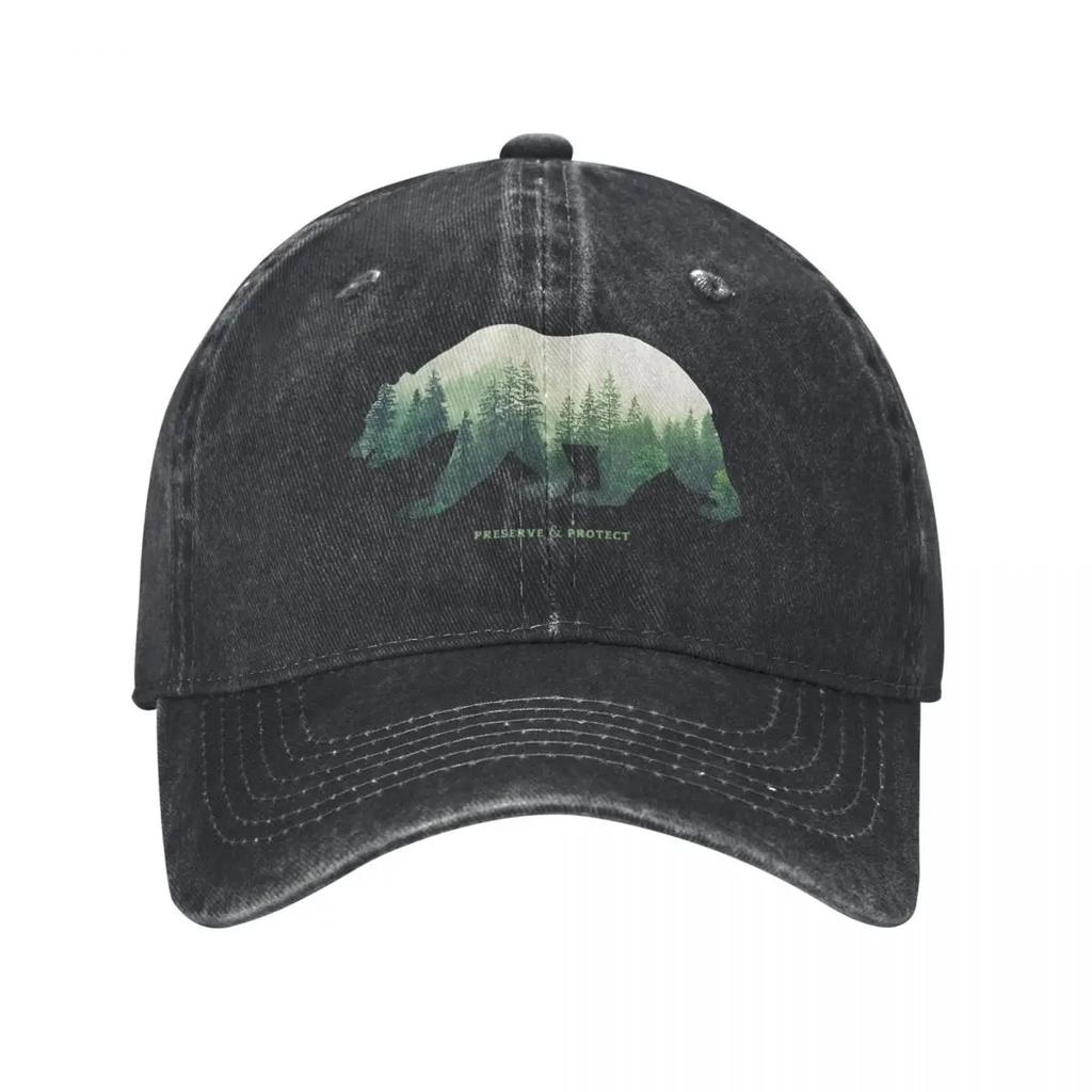 Double Exposure Bear Forest Conserve Protect Nature Demin Trucker Hat Breathable Design Mens Cap Womens Baseball Cap